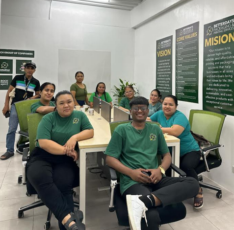 Rose Ann Toledo front left a client of CARD SME Bank Inc from Silang Cavite with her staff at BetterDays Packaging amp Printing Services during operations at their manufacturing office